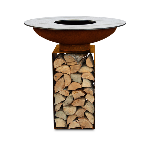 OutrUne Plancha Urban 90 se compose de trois parties : une base pour le stockage du bois avec un bol à feu sur le dessus, terminée par une plaque de c...