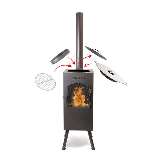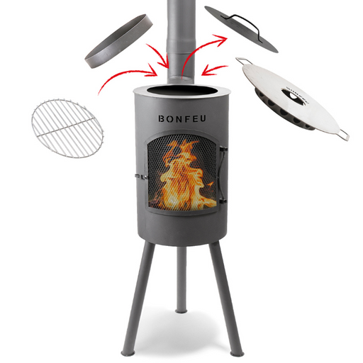 Vous désirez plus qu’une simple cheminée de jardin ? Avec cette plaque de cuisson BonFeu, vous pouvez la transformer en un appareil de cuisson pol...