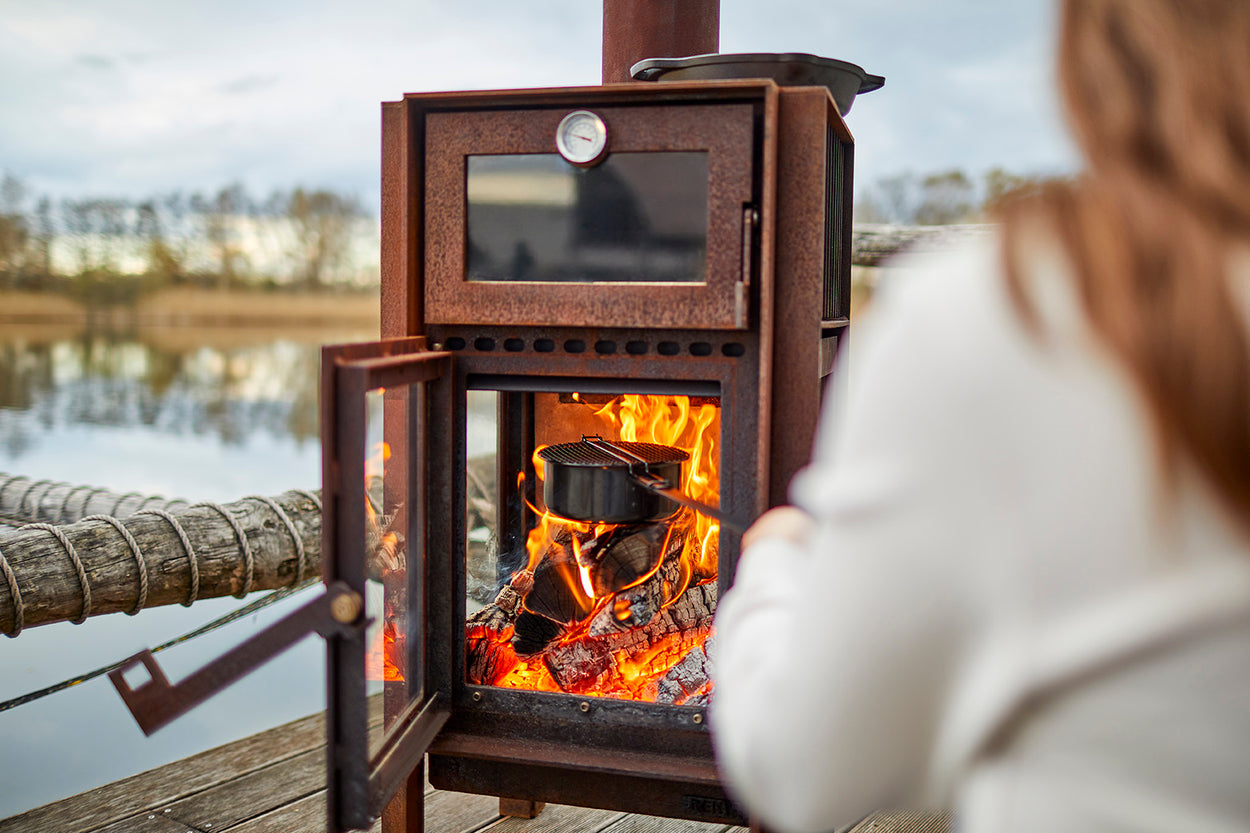 Le RB73 allie savoir-faire, qualité et design dans chaque poêle à bois. Les poêles sont fabriqués en acier Corten, un matériau durable et résistant aux intempéries qui développe une couleur rouille caractéristique au fil du temps. Cela offre non seulement une apparence robuste, mais également une protection supplémentaire contre les éléments. Les portes vitrées garantissent que les étincelles n'ont aucune chance, tout en vous offrant une vue optimale sur le feu atmosphérique. Que vous passiez une soirée intime dans le jardin ou que vous restiez assis dehors avec des amis jusqu'au petit matin, avec un poêle RB73, vous pourrez profiter de la chaleur et du confort toute l'année.